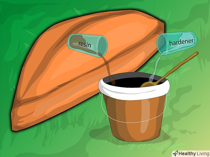 Змішайте смолу і затверджувач відповідно до інструкцій на упаковці і відразу ж вилийте розчин у відро для фарби. через півгодини розчин стане значно густішим, і його можна буде наносити на корпус човна.