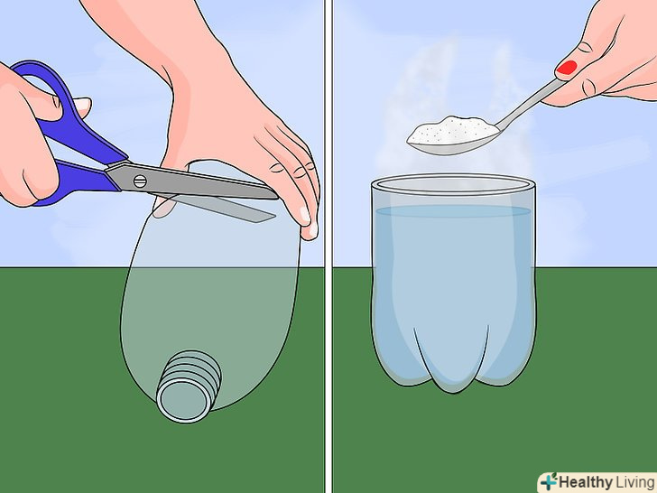 Візьміть пластикову пляшку і розріжте її навпіл. приготуйте солоний розчин і вилийте його в нижню половину пляшки.