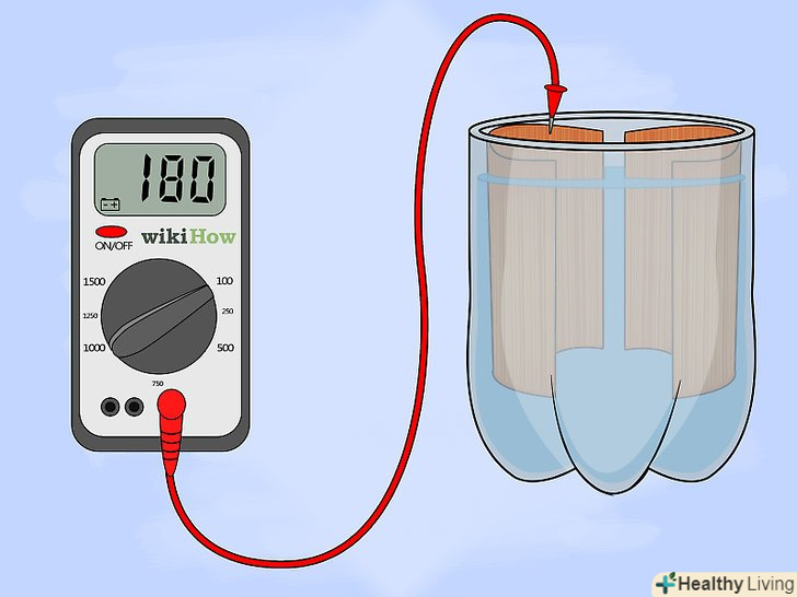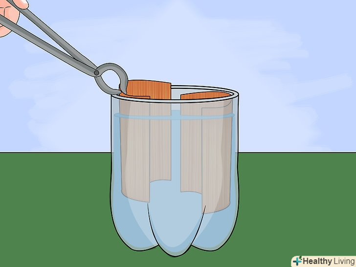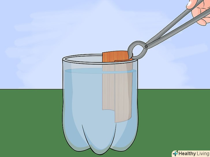 Вставте в пляшку обпалений мідний лист. Дивіться, щоб дріт не торкалася води.