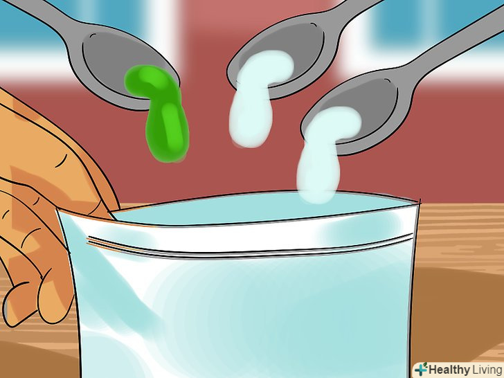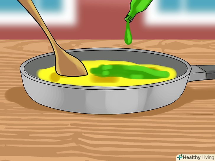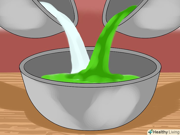 - Додайте в суміш 3-5 крапель зеленого харчового барвника. Якщо хочете, можете додати більше або менше барвника. [2]