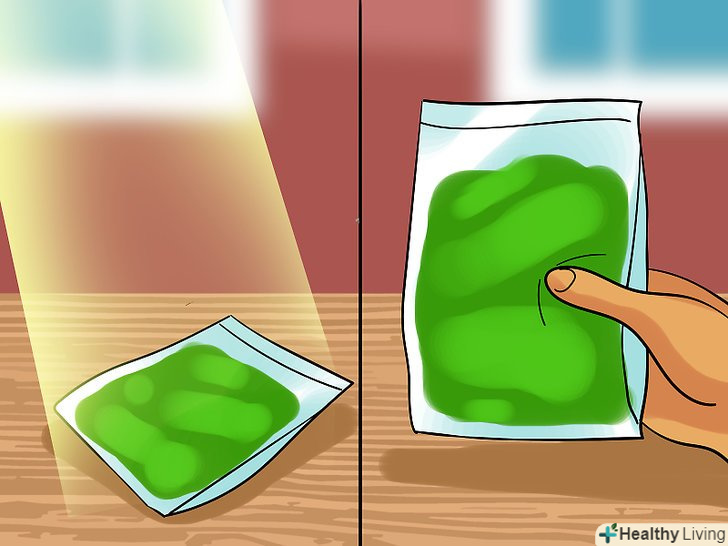 Закрийте пакет і струсіть вміст. ретельно запечатайте пакет і струсіть його рукою, щоб перемішати інгредієнти і отримати зелену пасту. Перекладіть пакет в іншу руку, коли одна з них втомиться.- Не трясіть пакет догори дном. [3]
