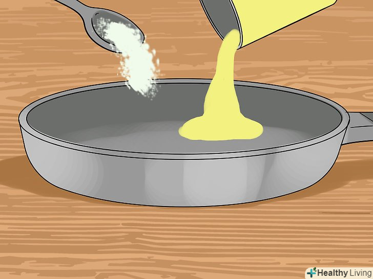 - Відміряйте 1 столову ложку (15 г) кукурудзяного крохмалю. Висипте кукурудзяний крохмаль в сотейник. [18]