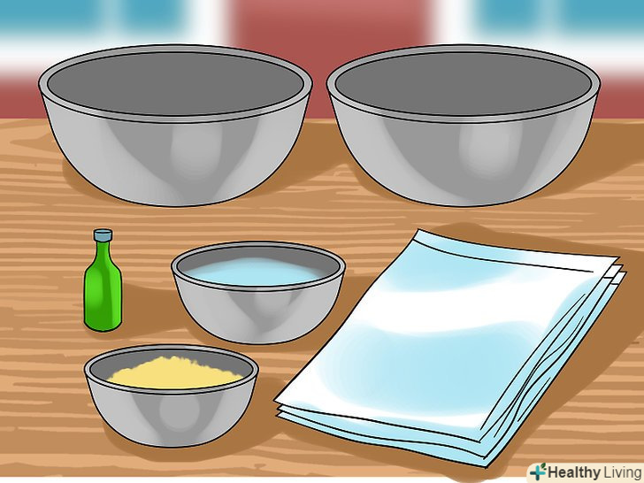 Підготуйте всі необхідні інгредієнти і матеріали. щоб приготувати рідку слиз на основі крохмалю, вам знадобляться:- Велика миска;