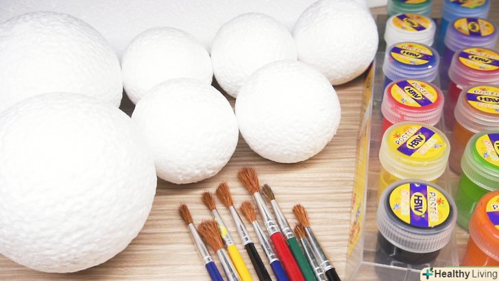 - Застроміть по паличці в кожен пінопластовий кульку. так вам легше буде розфарбувати їх. [7]