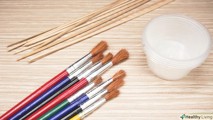 Приготуйте інші матеріали. вони допоможуть вам розфарбувати планети. [6]- Візьміть щонайменше 8 дерев'яних або металевих паличок. Підійдуть шпажки, використовувані для шашлику.