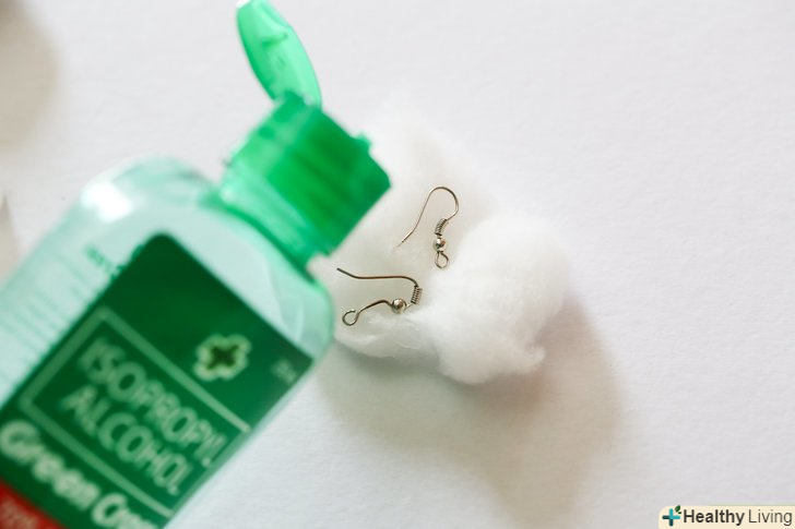 Дезінфікуйте застібки. обережно протріть застібки дезинфікуючим засобом. Вам потрібно бути дуже обережними, перед тим як почати носити сережки.