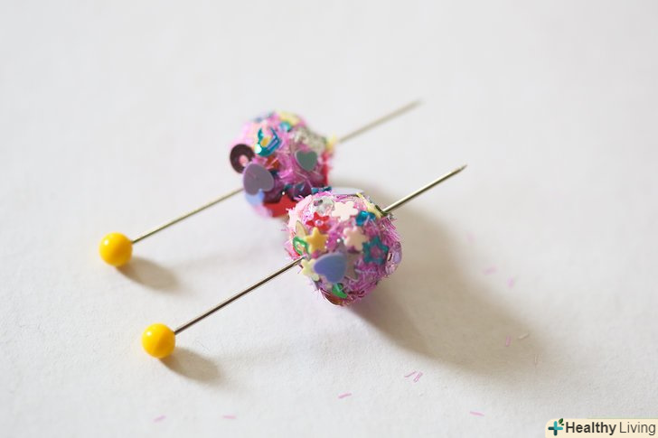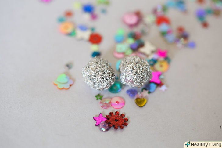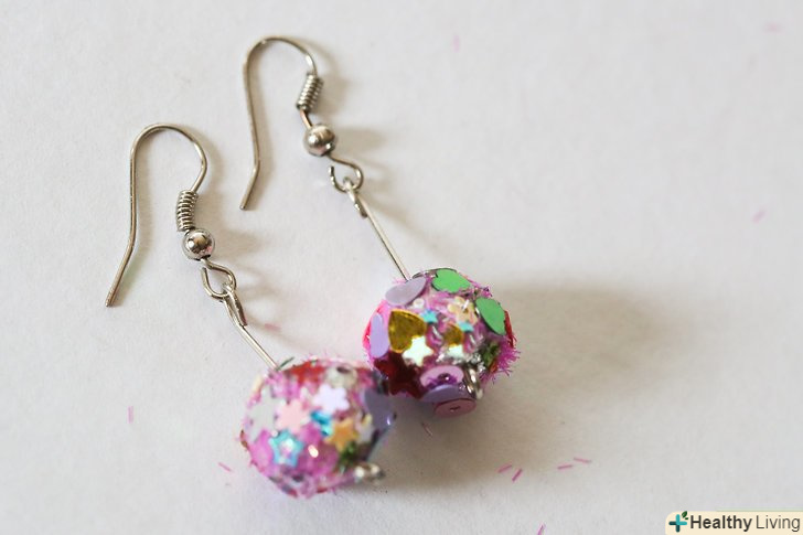 Прикрасьте сережки. Ви можете прикрасити сережки, як забажаєте. Ви можете намазати їх клеєм і потім занурити в блискітки. Ви також можете прикрасити їх маленькими наклейками або маленькими клейкими прикрасами. Ви можете використовувати клей, щоб прикрасити їх волохатими кульками або чимось іншим. Ви також можете пофарбувати їх і потім додати прикраси і просто залишити їх кольоровими.- Якщо ви використовуєте клей, щоб прикрасити сережки, дайте йому час висохнути, перед тим як переходити до наступного кроку.