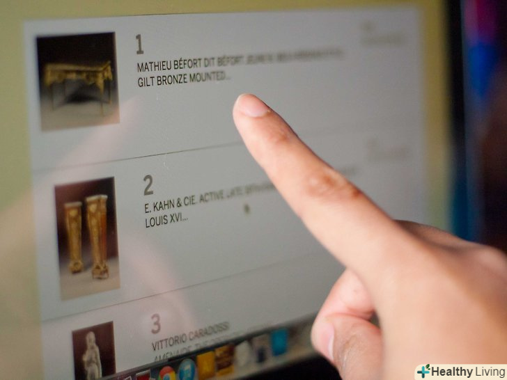 Пошукайте в Інтернеті. відомі аукціонні будинки, такі як Sotheby і Christie також доступні і в Інтернеті. Ви навіть можете знайти щось на eBay.- Відвідуйте аукціони в антикварно-аукціонних будинках. Sotheby, Christie і Bonhams мають представництва по всьому світу, і у вашій країні вони, ймовірно, теж є. Ви зможете розглянути предмети з більш близької відстані, перед тим як їх виставлять на аукціон. Таким чином, ви зможете прийняти більш зважене рішення щодо того, чи хочете ви придбати даний предмет.