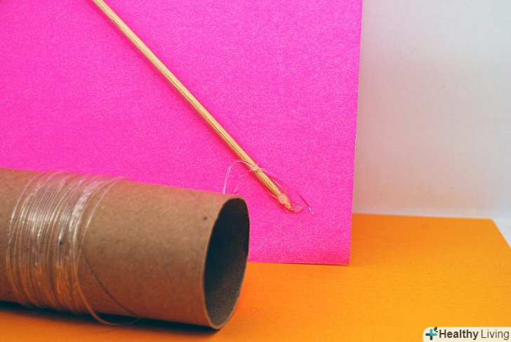 Прикріпіть волосінь до рулону туалетного паперу і намотайте на нього волосінь. прикріпіть інший кінець волосіні до кінця палиці.