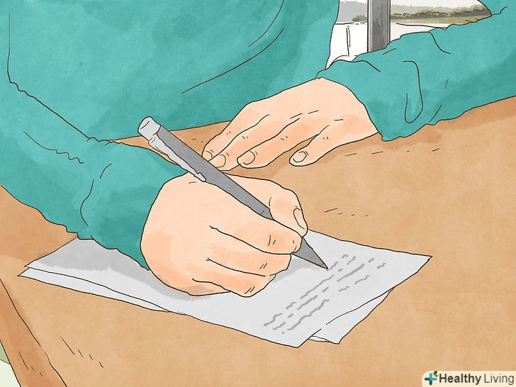 Напишіть листа. Сьогодні мало хто пише листи, оскільки всі ми звикли відправляти електронні повідомлення. Однак людям подобається отримувати рукописні листи. Згідно з дослідженнями, думки, виражені в письмовій формі, допомагають мати більш позитивний погляд на світ. [3]- Можна написати людині, яка знаходиться від вас дуже далеко або близькій, яку ви бачите кожен день. У листі можна написати те, що ви не готові сказати вголос. Хочете сказати людині про свої ніжні почуття? Хочете розповісти своєму близькому про те, що ви стоїте перед прийняттям важливого рішення, наприклад, перед вступом до коледжу або важливим етапом у побудові вашої кар'єри? Лист допоможе встановити тісний зв'язок з його одержувачем; крім того, ви зможете ще раз обміркувати важливі для вас рішення.