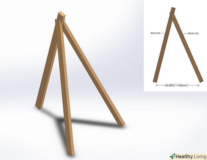 Завершення збірки. залишивши мольберт в положенні розведених на 1125 мм ніг, просвердлите два отвори в передніх ногах на відстані 950 мм від низу ніг.
