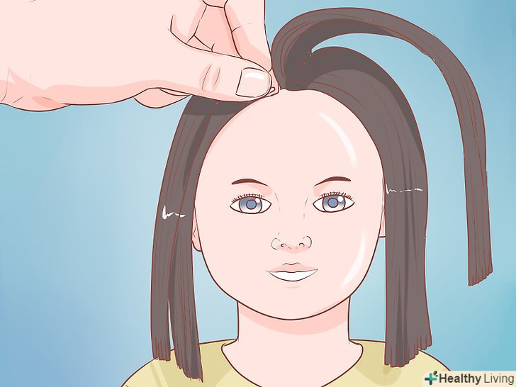 Відріжте необхідну довжину. Тепер, коли волосся витягнуті і розправлені, можна відрізати потрібну довжину. Виходьте з розмірів ляльки. Відрізайте волосся в два рази довше майбутньої зачіски, щоб розподілити їх на дві сторони від проділу. [14]- Іноді Синтетичні волосся складно відрізати, оскільки з ними непросто працювати. Змочіть волосся, щоб вони трималися разом, а потім відріжте по рівній лінії.