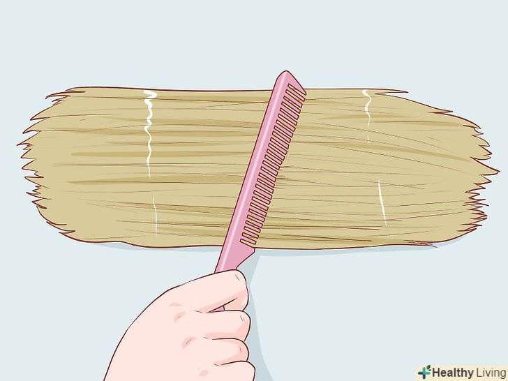Дістаньте Синтетичні волосся з пакета. спочатку необхідно розпакувати волосся. Іноді це непросто, так як синтетичні волосся дуже тонкі і можуть заплутатися або зім'ятися при доставці. Повільно діставайте волосся невеликими пучками, позбавляйтеся від поплутаних волосся і розрівнюйте. [13]- Розчісуйте волосся пальцями або маленькою лялькової гребінцем, щоб розплутати локони, адже вони дуже легко сплутуються між собою.