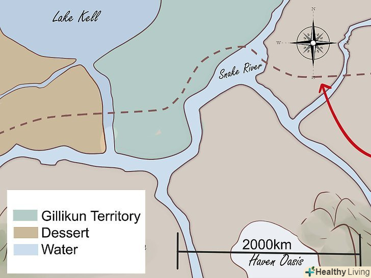 Вкажіть напрямки. для цього десь в порожньому місці намалюйте компас з підписаними сторонами світу-Північчю, півднем, Сходом і Заходом. Це особливо корисно, якщо ваша карта орієнтована ... нестандартно, скажімо, якщо північ розташований десь знизу.