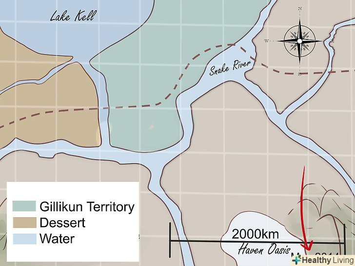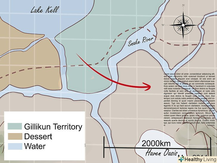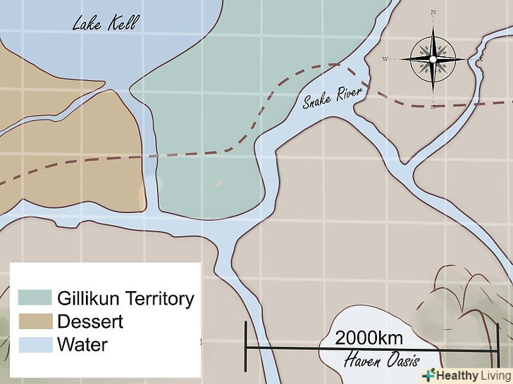 Підготуйте легенду. Легенда карти - це, по суті, словник, що пояснює, що означає той чи інший колір або символ на карті. Це допоможе читачеві (точніше, глядачеві) зрозуміти, що позначено тим чи іншим символом, навіщо ви вибрали саме той колір, а не інший, ну і так далі. Обов'язково включіть в легенду всі використовувані вами символи, щоб читачі не заплуталися!- Легенду ще іноді називають ключем карти.