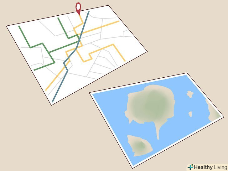 Подумайте, що буде на вашій карті. власне, А яку саме карту ви створюєте: географічну, фізичну, політичну, дорожню або якусь ще? Тип карти багато в чому визначає те, як ви будете її малювати, так що краще визначитися з цим до початку роботи. Звичайно, можна намалювати і таку карту, яка буде об'єднувати в собі всі види карт, але, щоб не закрутити читачеві голову великою кількістю наведеної на карті інформації, вам доведеться зменшити кількість деталей.- В принципі, будь-які характеристики можуть лягти в основу карти: торгові шляхи, щільність населення, мови місцевого населення і так далі.