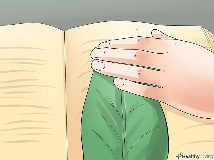 Згладьте листя і сушіть повільним, але простим способом. розкладіть один великий або кілька маленьких листя між двома паперовими рушниками так, щоб листя не накладалися один на одного. Відкрийте велику книгу, на зразок енциклопедії, і вкладіть паперові рушники з листям між сторінками. Закрийте книгу і покладіть плазом в яке-небудь місце поза увагою. Покладіть інші книги або встановіть важкий предмет зверху. Раз на тиждень перевіряйте, чи висохли листя, і міняйте паперові рушники, якщо вони вологі.- Якщо листя мокрі від дощу, промокніть їх насухо паперовими рушниками. Покладіть додатковий шар паперових рушників, якщо листя дуже вологі, або якщо ви переживаєте, щоб сторінки книги не забарвилися. [1]