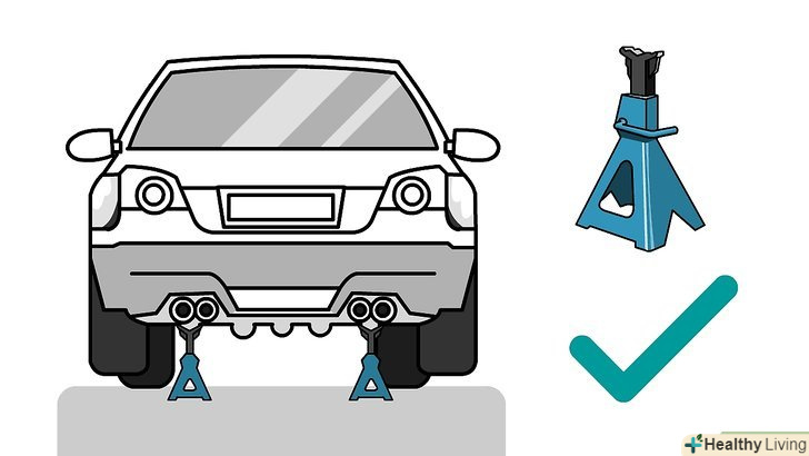 - Покладіть додаткові елементи під автомобіль, щоб мінімізувати ризик. Деякі любителі механіки рекомендують знімати шини і розміщувати їх під днище машини. Ви також можете використовувати тверді блоки будь-якого міцного матеріалу, щоб підстрахуватися. Коли справа доходить до роботи під транспортним засобом, краще перестрахуватися по максимуму.