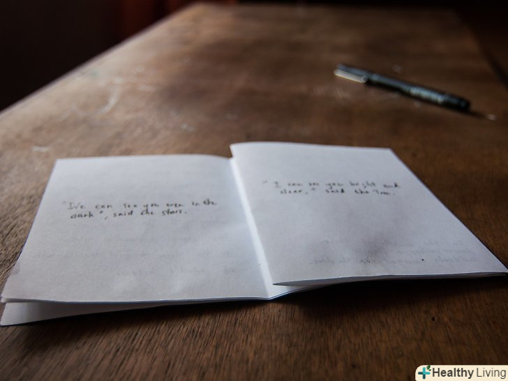 Напишіть чорновий варіант розповіді. за допомогою текстового редактора напишіть розповідь, який буде містити чіткий початок, середину і кінець. [7] на даному етапі не слід турбуватися про правильність побудови фраз і виборі слів. Зараз ви лише формуєте конструкцію зі своїх ідей. Пізніше цю конструкцію можна буде доповнити авторським стилем і каламбурами.- Загальна кількість слово має бути близько 500 одиниць. Розповідь більшого обсягу вельми складно вмістити в книжку. До того ж, великий текст відволікає увагу від ілюстрацій. Вибір слів повинен бути синтаксично вивіреним і ефективним.