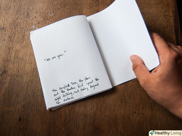Відредагуйте чернетку і створіть остаточний варіант. набагато зручніше редагувати текст, коли він розділений на менші уривки. По черзі переробіть уривки і перетворіть свій чернетку в стилістично завершену роботу. [8] конкретні деталі завжди залежать від вашого авторського стилю і сюжету, але зазвичай книжки з картинками відрізняються стислістю і поетичністю.- Використовуйте просту, ефективну мову, яка буде доповнювати наявні ілюстрації. Корисно використовувати прості рими, але не рекомендується коштувати навколо них весь текст. Сірі і пересічні рими-це гірше, ніж повна відсутність Рим.