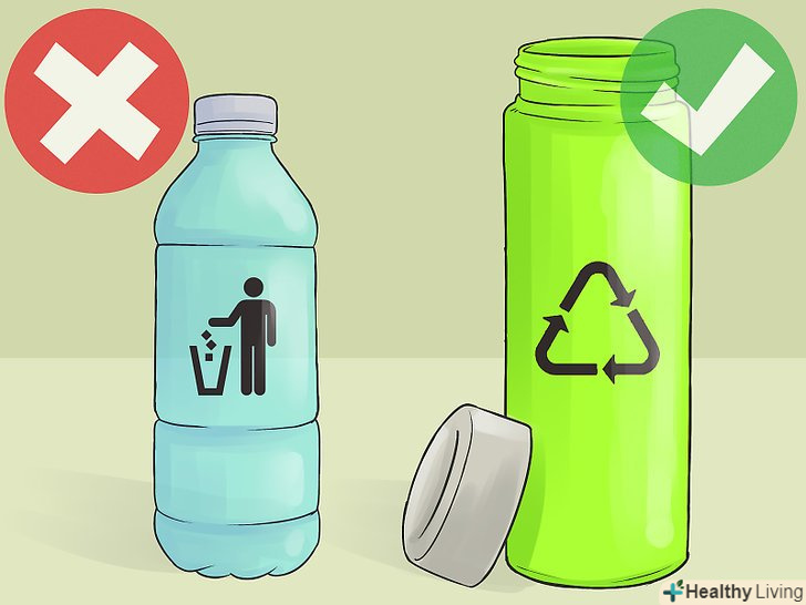 Використовуйте пляшки, в складі яких немає бісфенолу А. Якщо ви збираєтеся носити воду в цій пляшці, самим безпечним вибором буде пляшка з пластику, що не містить бісфенол А Пляшки для води виготовляють з різних пластмас, і ці пластмаси, містять бісфенол А, може вилуговувати. Було доведено вплив бісфенолу А на розвиток цукрового діабету і серцево-судинних захворювань у людей. [1]- Більш підходящою альтернативою для багаторазової пляшки з водою буде нержавіюча сталь або скляна пляшка. Матеріал такої пляшки не вилуговується. [2]