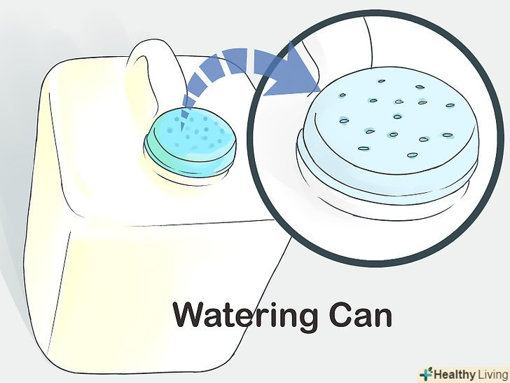 Зробіть лійку. найкраще використовувати для цього велику пляшку з ручкою (наприклад, «баклажку»). Все, що вам потрібно зробити – прорізати близько 10-15 отворів в ковпачку для пляшки, наповнити її водою і щільно закрити ковпачок. Можна виконати отвори за допомогою цвяха і молотка. [10]