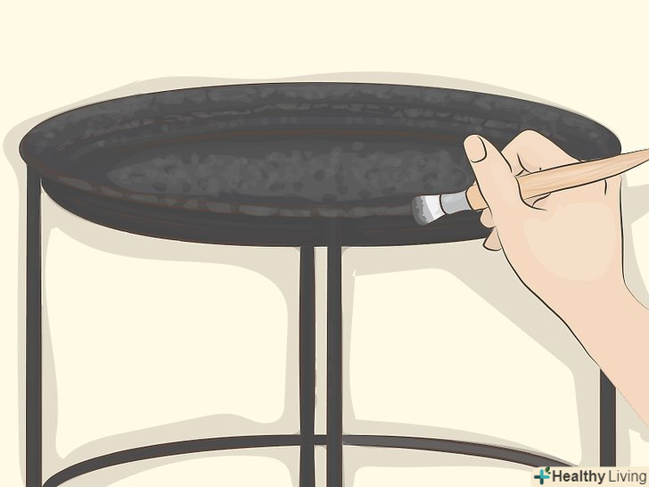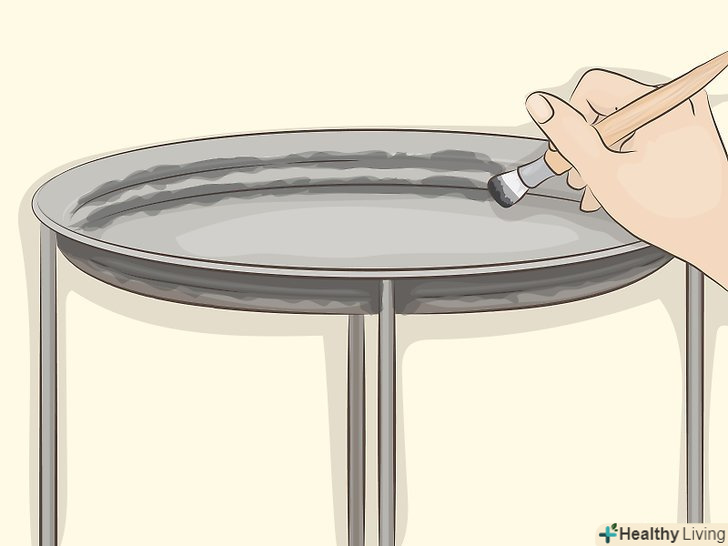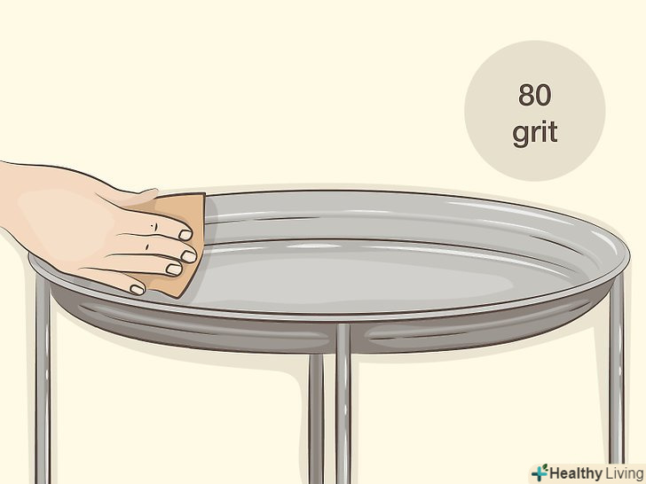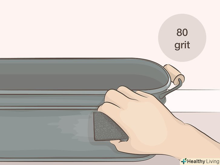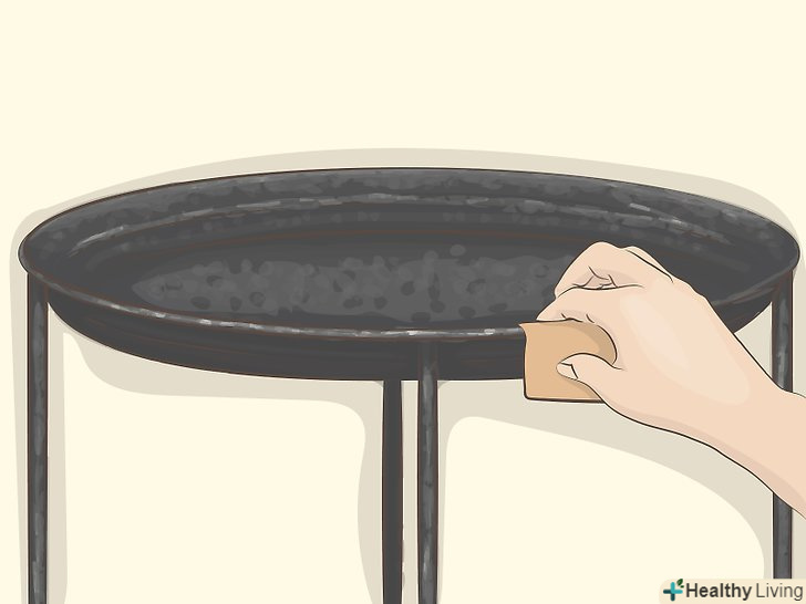 Обробіть металевий предмет наждачним папером з величиною зерна 200 мкм. для великих деталей можна використовувати шліфувальну машинку або верстат. Шліфування дозволяє позбутися від блиску обробки. Обробляйте металевий предмет до тих пір, поки поверхня не втратить блиск і гладкість. Після шліфування видаліть з предмета металевий пил.- Протріть метал розчинником або оцтом, щоб очистити поверхню. Це важливо для того, щоб краще трималася фарба. [1]