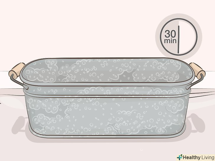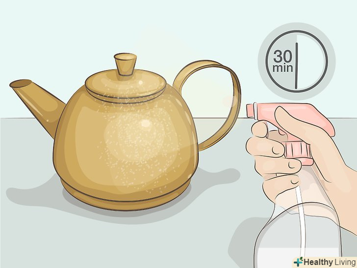 Помістіть предмет в розчин на 30 хвилин. металевий предмет повинен бути повністю занурений, щоб рівномірно ввібрати розчин.- Також можна розпорошити розчин на великий предмет. Наносите розчин декількома шарами протягом півгодини.