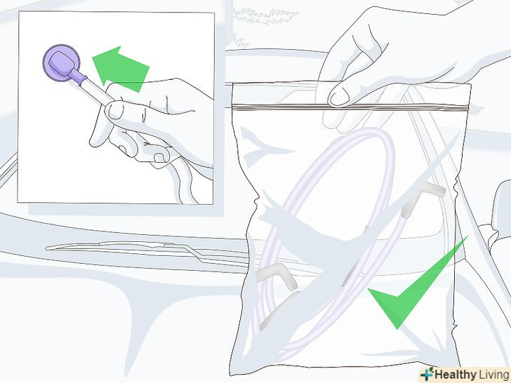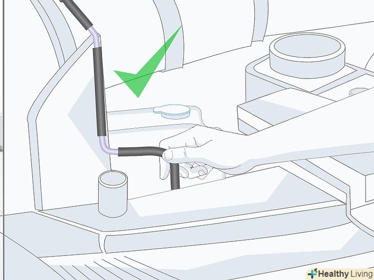 Огляньте трубки, що йдуть від бачка з омиває рідиною.якщо форсунки склоомивача не розпилюють омиває рідина на лобове скло, проблема може критися в обриві або перекручуванні шланга, що йде від бачка з омиває рідиною до форсунки. Огляньте трубки на предмет закупорки або пошкоджень.[10]- Почніть огляд з бачка і слідуйте по трубках аж до форсунок, закріплених на капоті.