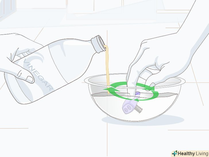 Замочіть форсунки в мисці з оцтом.можливо, у вас вийде позбутися від засмічень в форсунках, замочивши їх на якийсь час в мисці з оцтом. Поводьте їх трохи в оцті, щоб той неодмінно проник в закупорки. Витягніть форсунки через кілька хвилин з оцту і промийте їх.[8]- Спробуйте подути в форсунку після споліскування, щоб дізнатися, прочистилася чи закупорка.