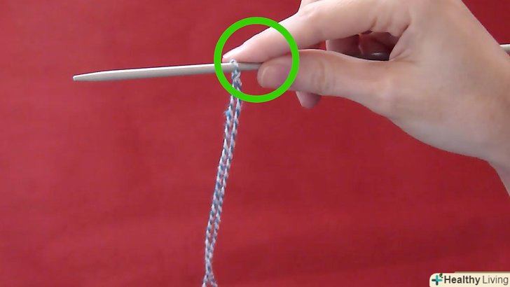 - Тримайте спицю з початковим рядом в лівій руці, а вільну спицю в правій руці. ви можете загорнути трохи робочої пряжі навколо вашого правого, середнього пальця, щоб вона завжди була за вашою роботою.