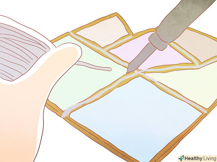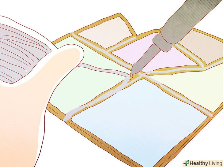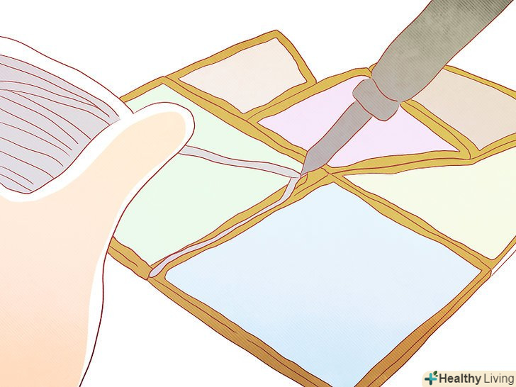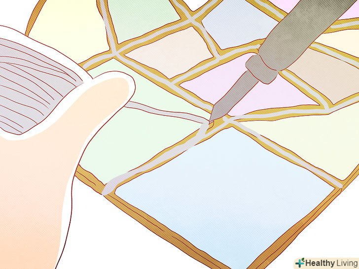 Зробіть потрібні вам фрагменти скла. продовжуйте надрізати і розламувати скло, поки не отримаєте відповідні за формою фрагменти. Для більшості виробів з кольорового скла необхідні фрагменти, що складаються разом подібно пазлу. Якщо ви роздумуєте над тим, що зобразити, можете придбати книжку, в якій наведені популярні зображення з кольорового скла.