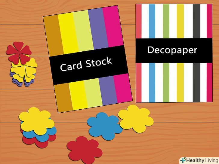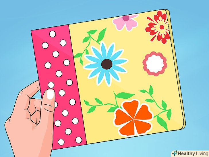 Виріжте прикраси з декоративного паперу. ви можете вирізати свої власні прості форми і конструкції з паперу, яка гармонує з колірною гамою кожної сторінки.- Можете також використовувати кольоровий картон.