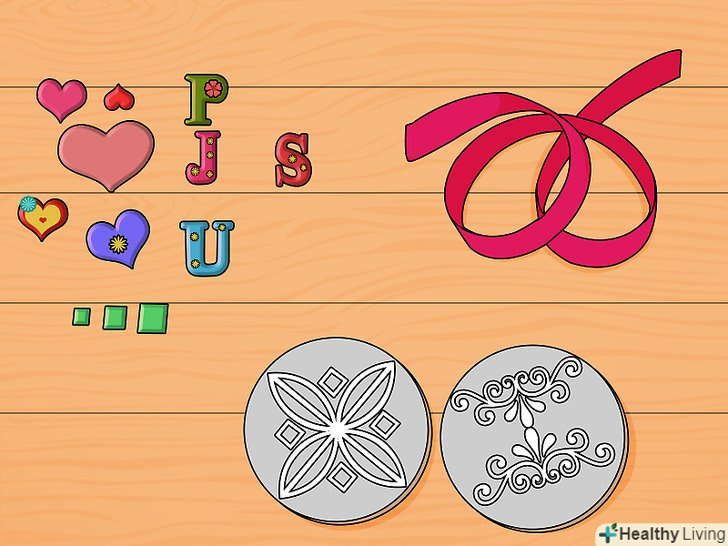Виберіть прикраси. вони повинні відповідати тематиці альбому.- Зазвичай прикрасами можуть послужити Тривимірні наклейки, гумові друку, Брелоки. Тут все залежить від вашої фантазії. Але пам'ятайте, що вони повинні бути плоскими, інакше ваш альбом не буде закриватися.