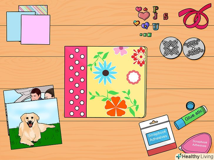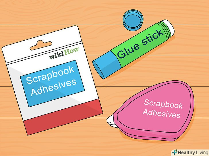 Виберіть клей для альбому. їх величезна безліч, і у кожного є свої плюси і мінуси. [2]- Клеї-спреї хороші тим, що їх зручно використовувати на великій поверхні, і вони не роблять папір занадто «мокрою». Також вони зручні для роботи з тонкими матеріалами. Дайте клею висохнути після нанесення.