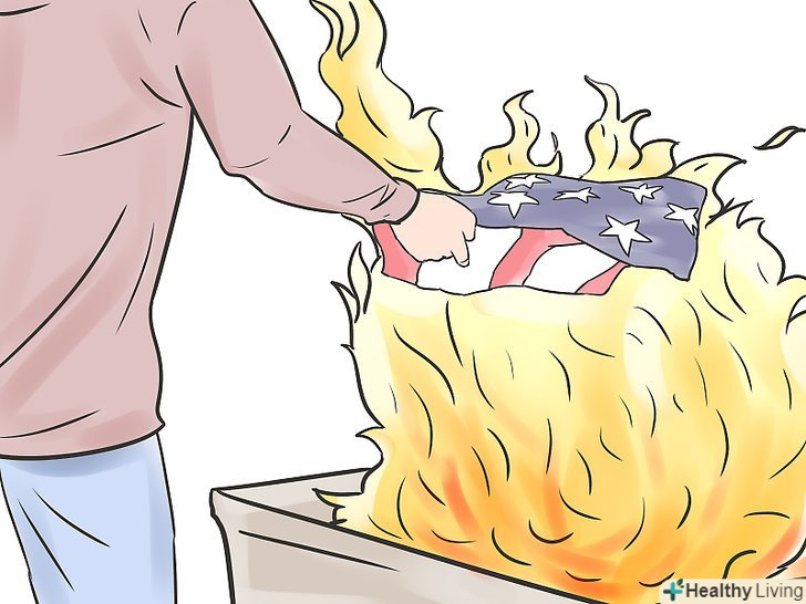Вивчіть Кодекс прапора Сполучених Штатів. багато людей не розуміють, що це юридичне питання. Конкретні федеральні закони регулюють підняття, збереження зовнішнього вигляду і розташування прапора.- Американський прапор означає свободу. Спалювання прапора-одне з головних проявів неповаги, неприйнятне багатьма американцями. Тим не менш, спалювання пошкоджених прапорів, дозволено кодексом прапора Сполучених Штатів; таким чином, старі і зношені прапори відправляють на пенсію, але про це мова піде трохи пізніше.