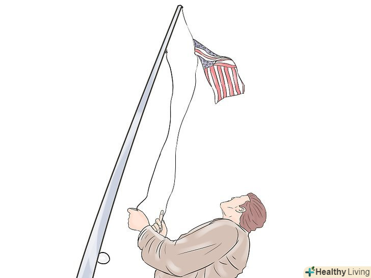 Вішайте прапор правильно. Якщо прапор розміщують на території США, Прапор Сполучених Штатів Америки повинен майоріти вище всіх інших прапорів, і він повинен бути найбільшим за розміром, в якій би групі прапорів він не знаходився. Якщо прапор майорить вночі, він повинен обов'язково висвітлюватися.- Постійно стежте за тим, чи не був виданий наказ приспустити прапор.