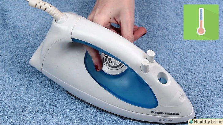 Налаштуйте праску на слабкий нагрів. почніть з найбільш холодного впливу, щоб звести до мінімуму пошкодження паперу від перегріву. Занадто висока температура пересушить папір, зробивши її крихкою і пожовклою.- Пропрасуйте рушник праскою. коли праска досить нагріється, поставте його на рушник, поводите по поверхні рушники, як якщо б ви його просто гладили.