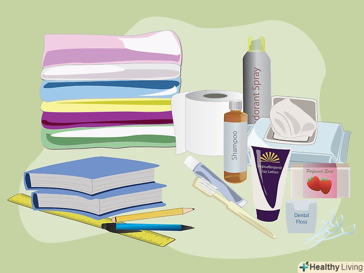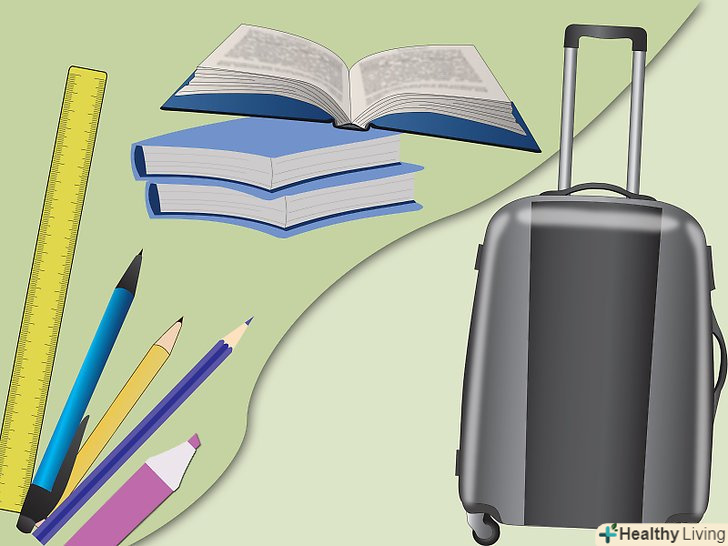 Зберіть всі ваші речі, туалетні приналежності та навчальні матеріали в одному місці, щоб можна було їх упаковувати. переконайтеся, що у вас є все, що потрібно.