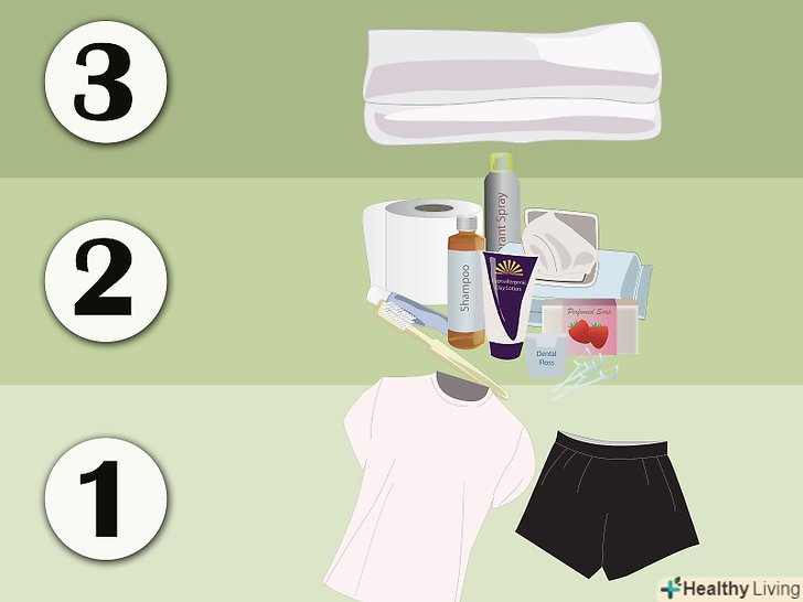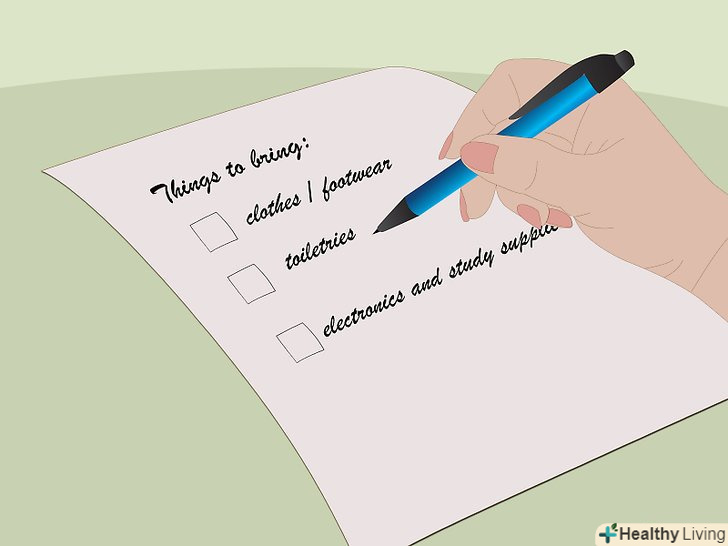Напишіть список всіх речей, які вам потрібно упакувати, або роздрукуйте його з сайту табору. Перевірте, що у вас вже є, а що потрібно купити. Хоча це залежить від табору, все ж подумайте про те, щоб взяти такі речі:- Достатньо нижньої білизни. Якщо в таборі у вас не буде доступу до пральні, варто взяти хоча б одну пару нижньої білизни на кожен день. З іншого боку, привозячи пару на кожен день, ви і не подумаєте прати.