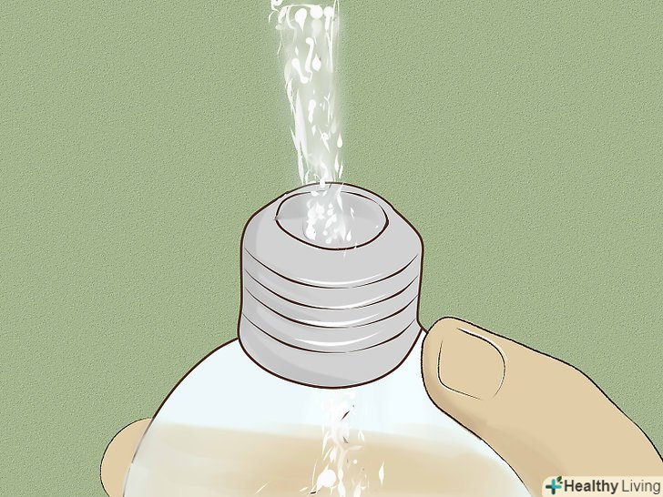 Струсіть лампочку. акуратно накрийте нижню частину лампочки і добре струсіть її. Сіль повинна очистити лампочку від залишків каоліну.- Притисніть пальцем в рукавичці нижню частину лампочки, щоб сіль не розліталася по сторонах. Ви також можете накрити нижню частину лампочки паперовим рушником для тієї ж мети.