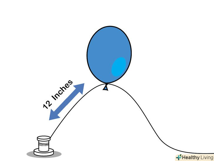 Прив'яжіть волосінь до кулі. відступите приблизно 30 см від вантажу. Оберніть волосінь навколо хвостика повітряної кулі трохи вище вузла, а потім зав'яжіть її міцним подвійним вузлом. [9]