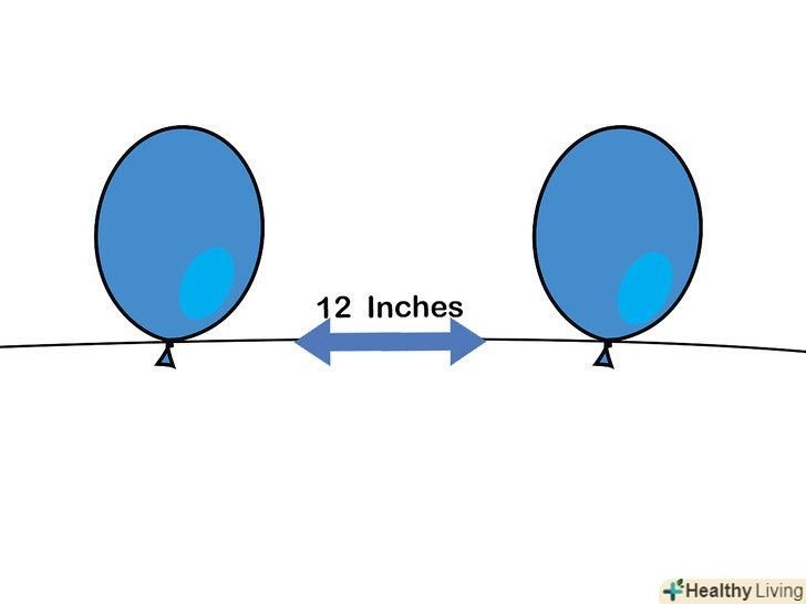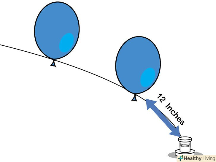 Продовжуйте надувати і прив'язувати до волосіні кулі. розташовуйте кулі досить близько один до одного, щоб вони стикалися боками. [10] рухайтеся від одного кінця волосіні до іншого. Залиште вільними лише останні 30-35 см волосіні.- Якщо в якості вантажу ви взяли шлакоблок, вам доведеться залишити достатній запас волосіні, щоб їм можна було обв'язати такий вантаж.