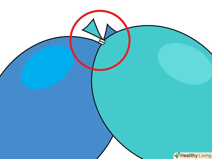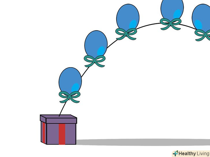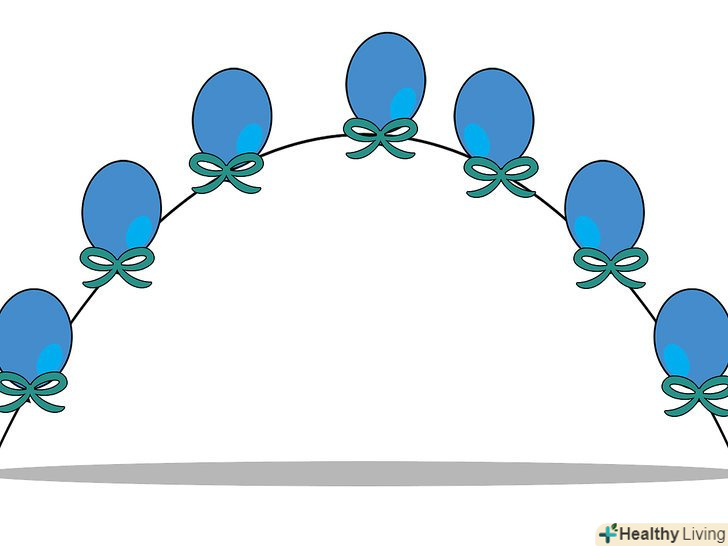 Наповніть першу кулю гелієм з балона. на відміну від інших арок, дана арка підтримує свою форму завдяки підйомній силі куль з гелієм. Наповніть газом першу кулю і зав'яжіть вузлом його хвостик. [8]- Балон з гелієм можна придбати в магазині товарів для свят або в магазині товарів для рукоділля. У деяких випадках навіть можна взяти балон з гелієм в оренду.