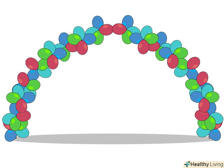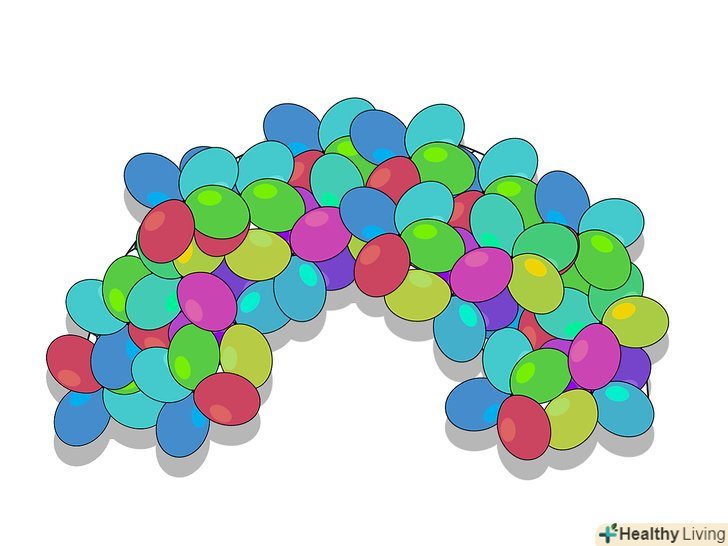 Заповніть кулями всю арку. Продумайте угруповання куль. Починайте роботу з великих куль, а потім переходите до більш дрібних. Можна навіть наклеювати маленькі кулі клейовими точками зверху на великі. [17]