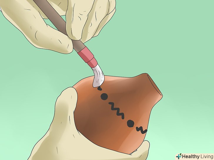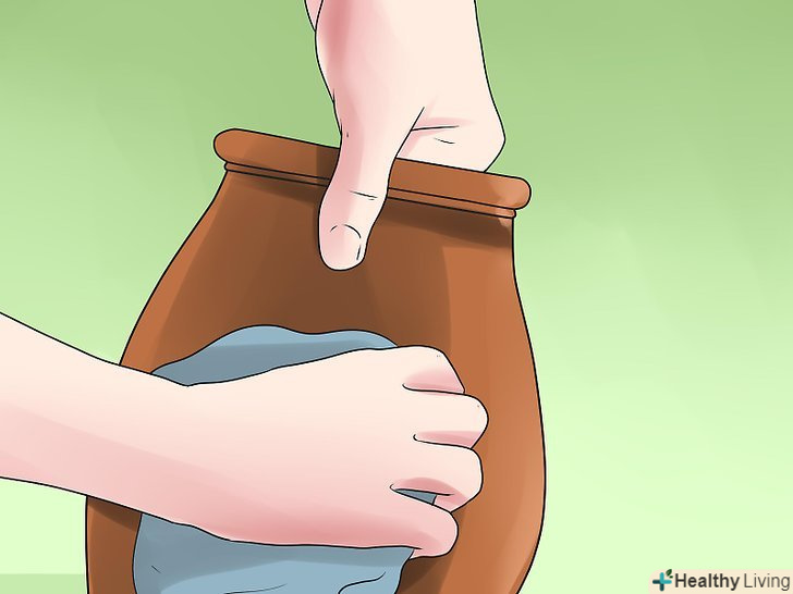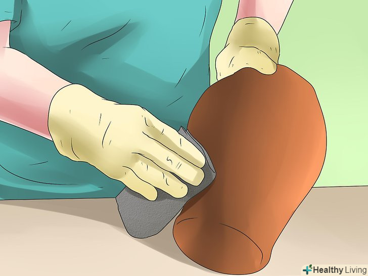 Відшліфуйте всі горбки і нерівності. якщо ви помітите на поверхні виробу краплі глини або горбки, яких там бути не повинно, користуючись наждачним папером зернистістю не менше 100, відшліфуйте заготовку, поки не досягнете рівної поверхні. [5] після шліфування обов'язково очистіть виріб від залишків пилу зволоженою губкою.- Якщо ви купили, а не зробили, самі заготовку для глазурування, всі нерівності також слід усунути.