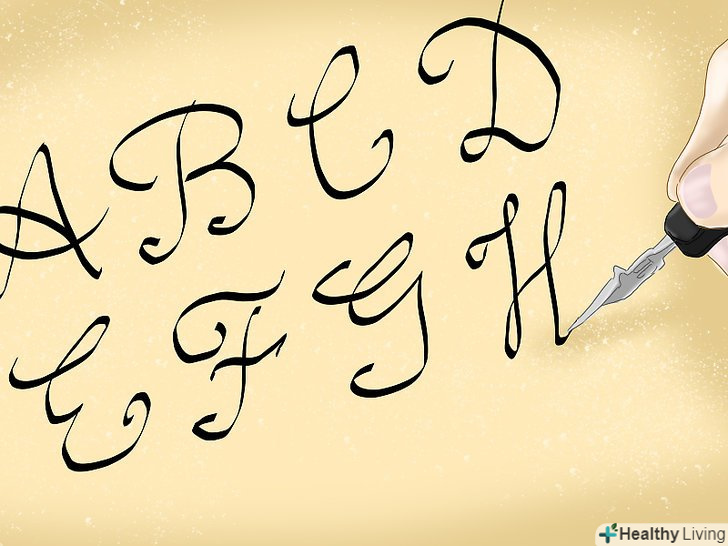 Вивчіть особливості курсиву. каліграфічний курсив багато в чому схожий на звичайний. Більшість букв пишеться одним рухом, оскільки завдання курсиву-прискорити процес написання. Вам потрібно буде освоїти спадні, висхідні і овальні штрихи. [16]