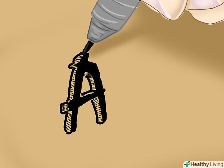 Проведіть спеціальною ручкою поверх олівцевих ліній. використовуйте ручку з гострим кінцем або ручку, яка дуже плавно ковзає по папері, — так лінії вийдуть більш чіткими. Спеціальні ручки можна купити в Інтернеті. [26]