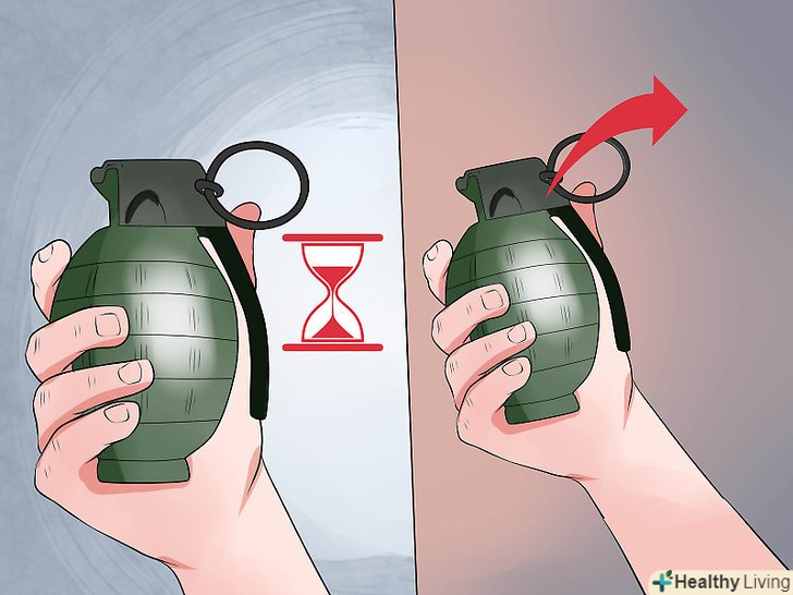 - Граната вже в повітрі, це (в буквальному сенсі) коли вона тільки вилетіла з ваших рук. Без тиску вашої руки і утримання важеля безпеки на місці, він полетить далеко від гранати, дозволяючи нападнику запалити плавкий запобіжник. Ви будете мати приблизно 4-5 секунд до вибуху гранати. Однак час може змінюватися залежно від типу гранати, яку ви використовуєте, або рідко через дефект запобіжника. [7]