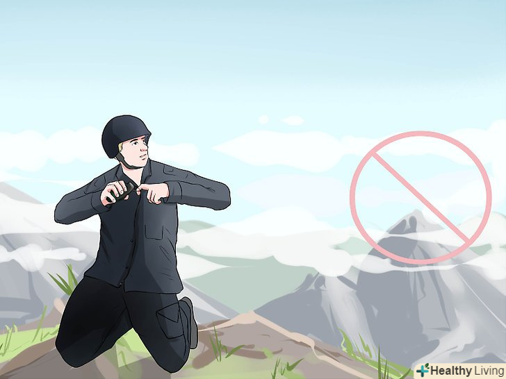 Уникайте кидати гранати на сходи або пагорби. кидаючи будь-яку гранату, смертельну або безпечну, важливо пам'ятати, що граната "може котитися". Таким чином, якщо вона приземляється на схил, вона може відкотитися від вашої мети або гірше того, відкотитися назад до вас. Тому це зазвичай погана ідея, кидати гранати на похилі поверхні, особливо якщо ви знаходитесь біля основи. [15]- Якщо ви «абсолютно» повинні кинути гранату в гору, спробуйте підготувати її заздалегідь і надати їй високу дугу так, щоб вона вибухнула в повітрі вище вашої мети або не мала часу, щоб відкотитися назад до вас.